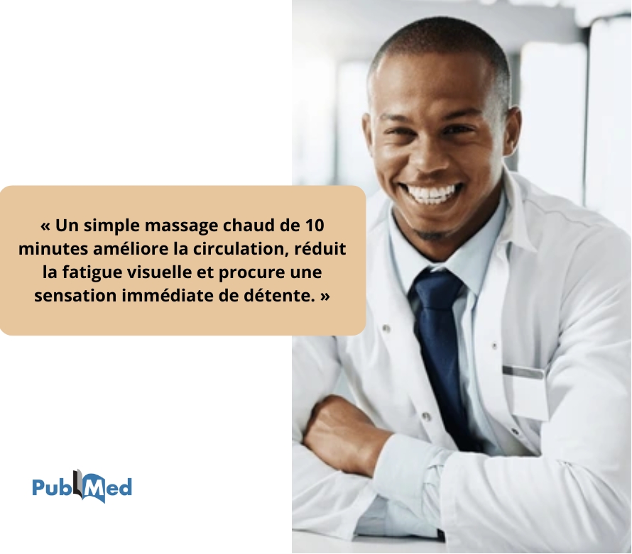 De nombreux ophtalmologues et spécialistes reconnaissent les bienfaits de la chaleur douce sur la fatigue visuelle, la sécheresse oculaire et la détente musculaire.